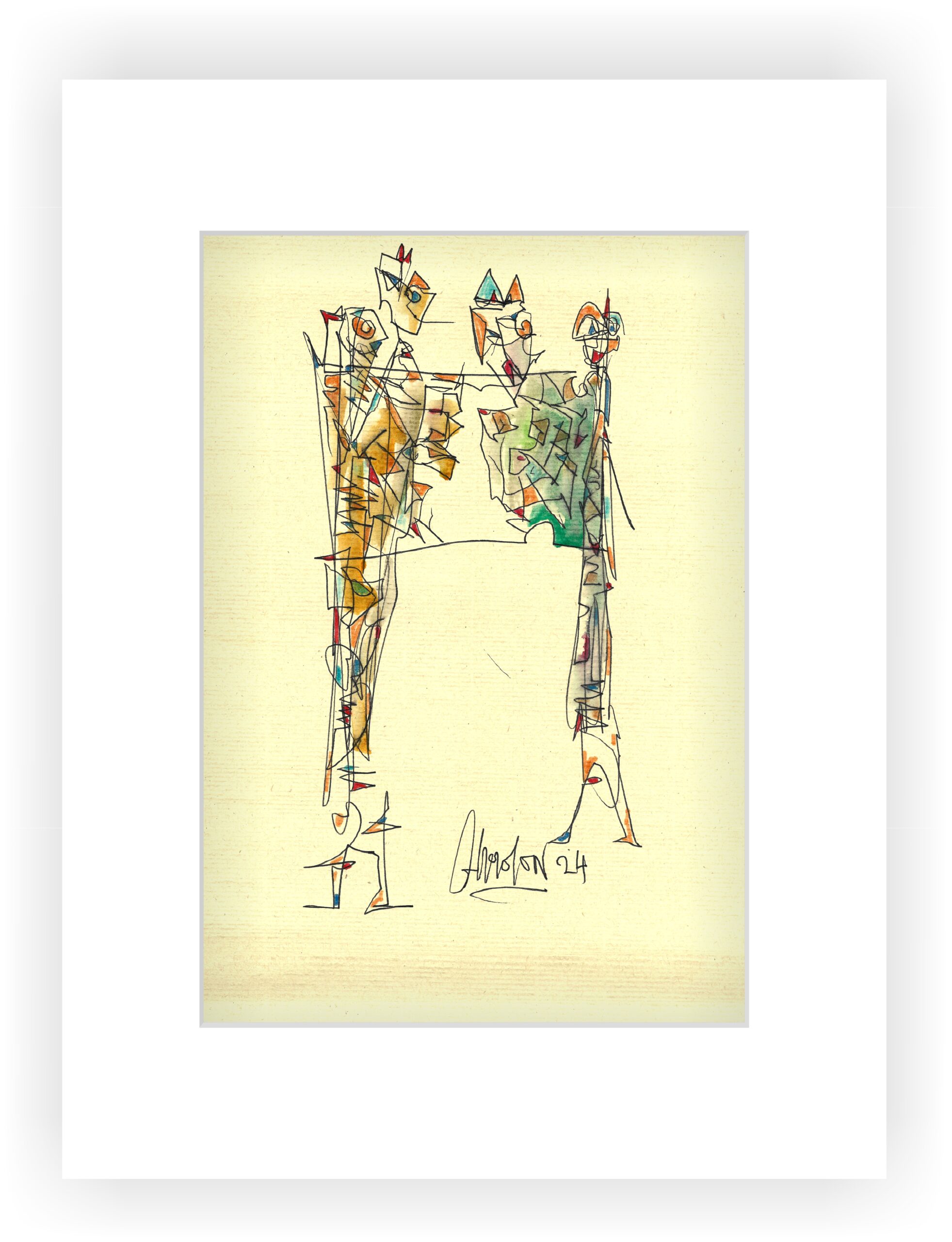 Geliefert wird das Original mit einem hellen Passepartout mit den Außenmaßen 30x40cm.