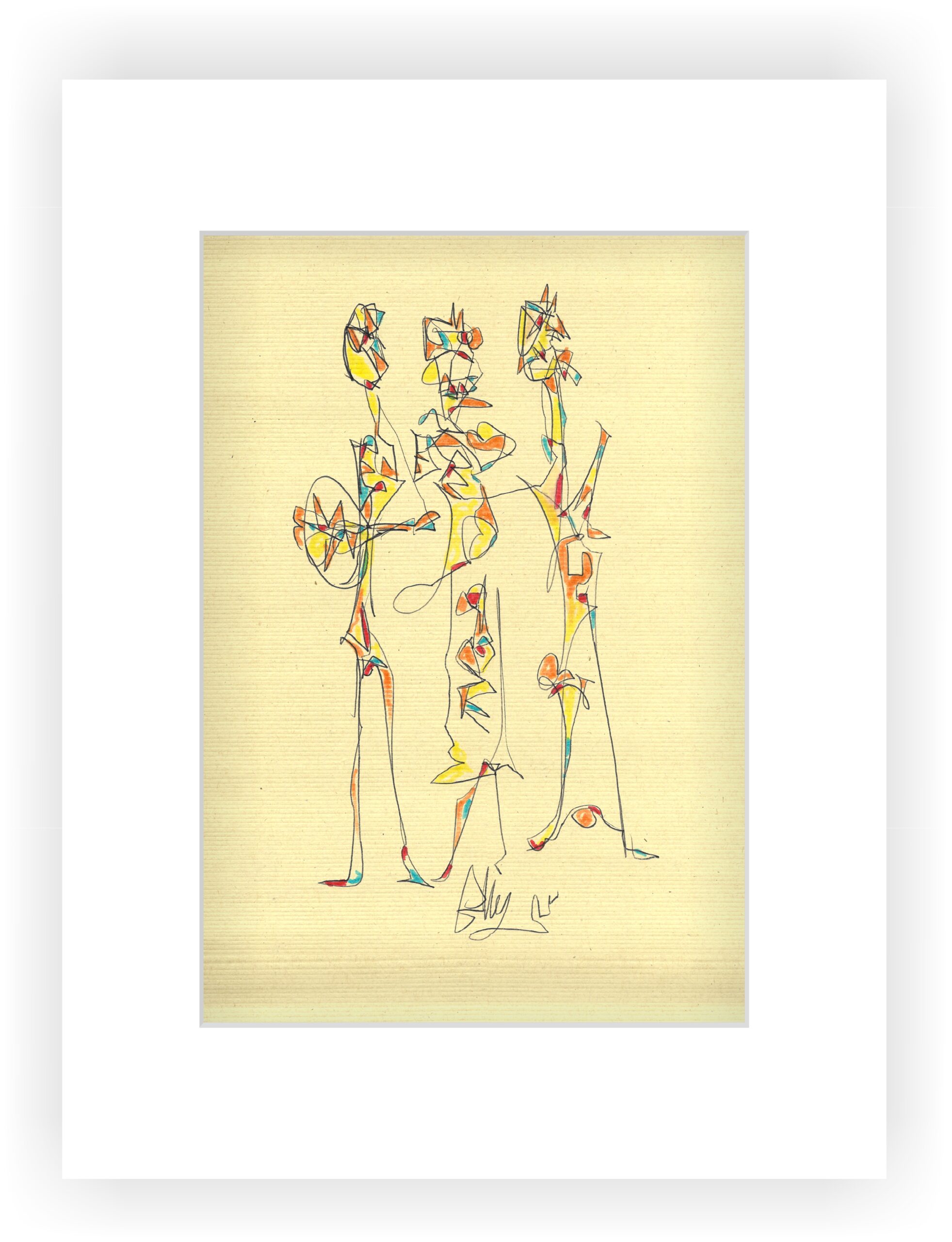 Geliefert wird das Original mit einem hellen Passepartout mit den Außenmaßen 30x40cm.