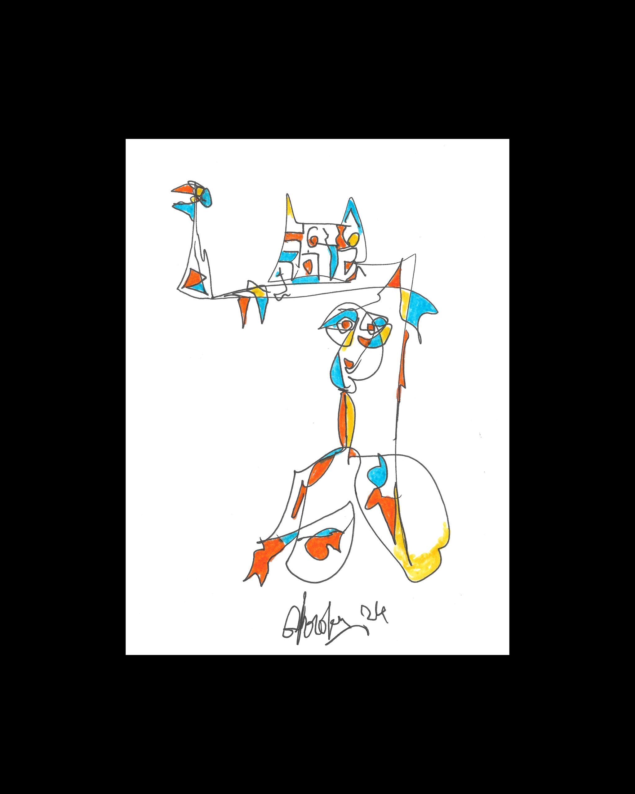 Im ersten Quartal 2024 schuf Jarallah Ghaidan über 650 Bilder! Etwa 160 davon werden hier im Shop angeboten. Die Bilder haben entweder eine Größe DIN A4 oder A5. Dieses Bild in der Größe DIN A5 wurde auf weißem Papier gemalt. Das Kunstwerk entstand unter Verwendung unterschiedlicher Techniken. Die Konturen werden in der Regel mit einem Tintenstift gezeichnet. Die Kolorierung erfolgt mit Filzstiften oder Wasserfarbe oder auch Acryl.
