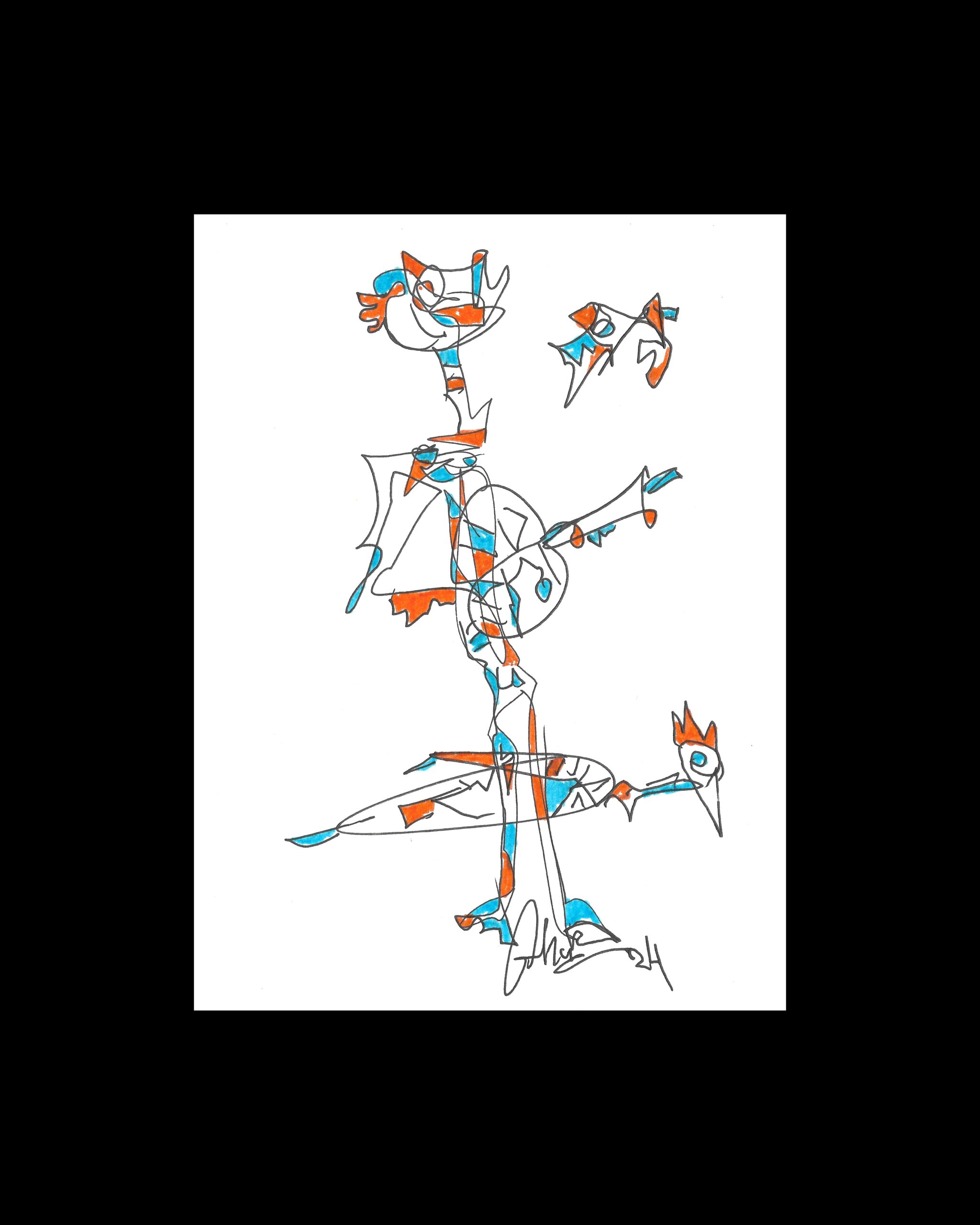 Im ersten Quartal 2024 schuf Jarallah Ghaidan über 650 Bilder! Etwa 160 davon werden hier im Shop angeboten. Die Bilder haben entweder eine Größe DIN A4 oder A5. Dieses Bild in der Größe DIN A5 wurde auf weißem Papier gemalt. Das Kunstwerk entstand unter Verwendung unterschiedlicher Techniken. Die Konturen werden in der Regel mit einem Tintenstift gezeichnet. Die Kolorierung erfolgt mit Filzstiften oder Wasserfarbe oder auch Acryl.
