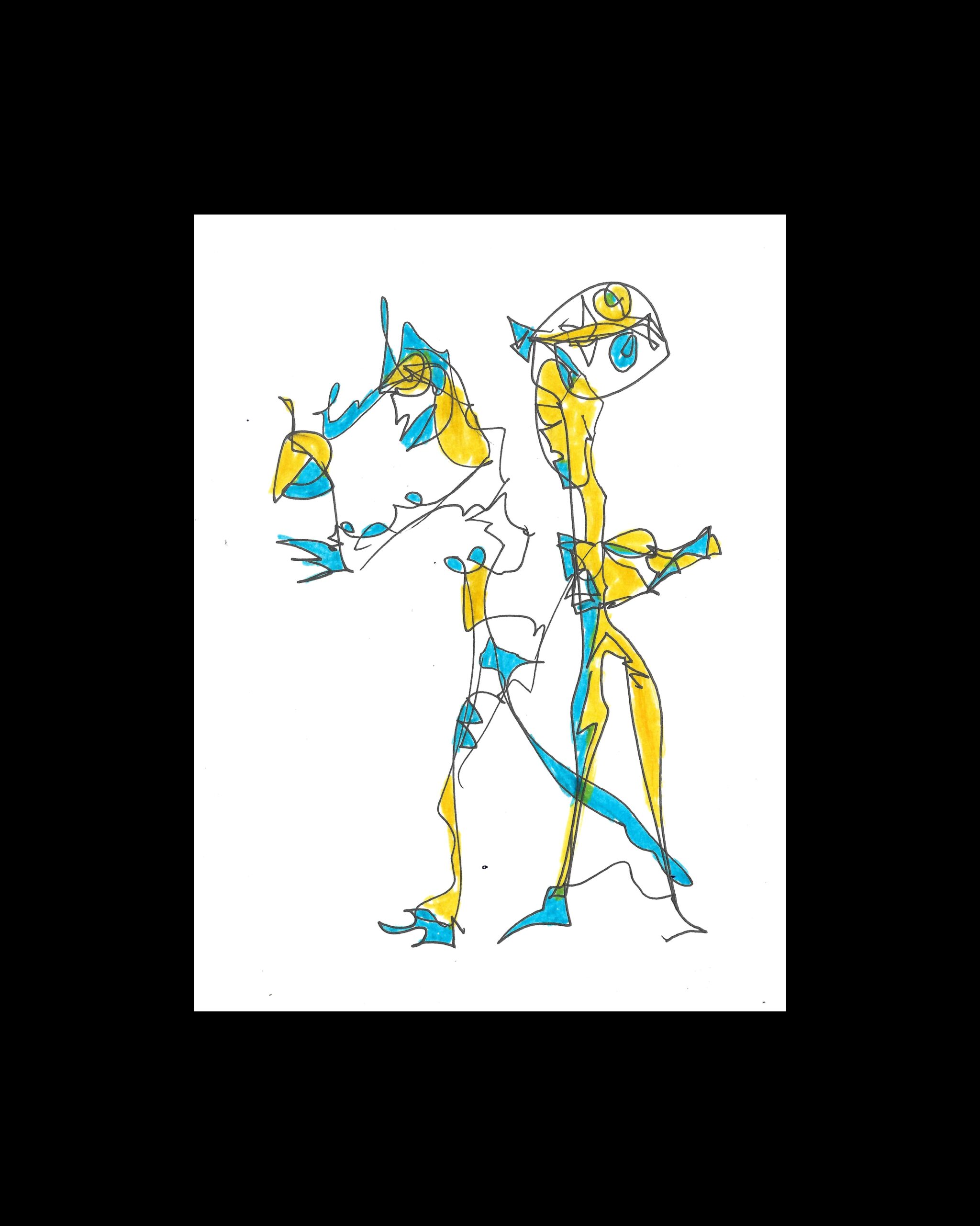 Im ersten Quartal 2024 schuf Jarallah Ghaidan über 650 Bilder! Etwa 160 davon werden hier im Shop angeboten. Die Bilder haben entweder eine Größe DIN A4 oder A5. Dieses Bild in der Größe DIN A5 wurde auf weißem Papier gemalt. Das Kunstwerk entstand unter Verwendung unterschiedlicher Techniken. Die Konturen werden in der Regel mit einem Tintenstift gezeichnet. Die Kolorierung erfolgt mit Filzstiften oder Wasserfarbe oder auch Acryl.