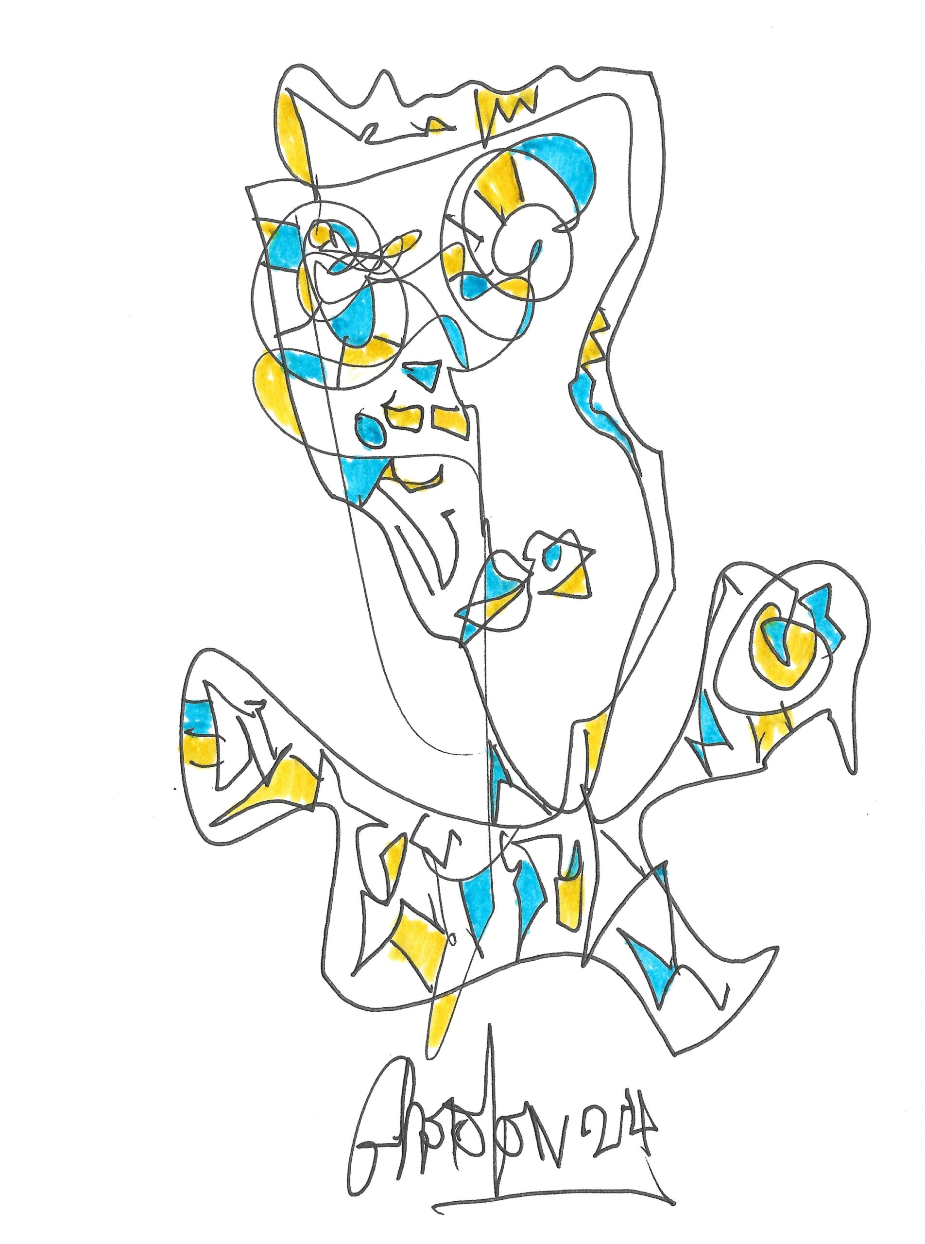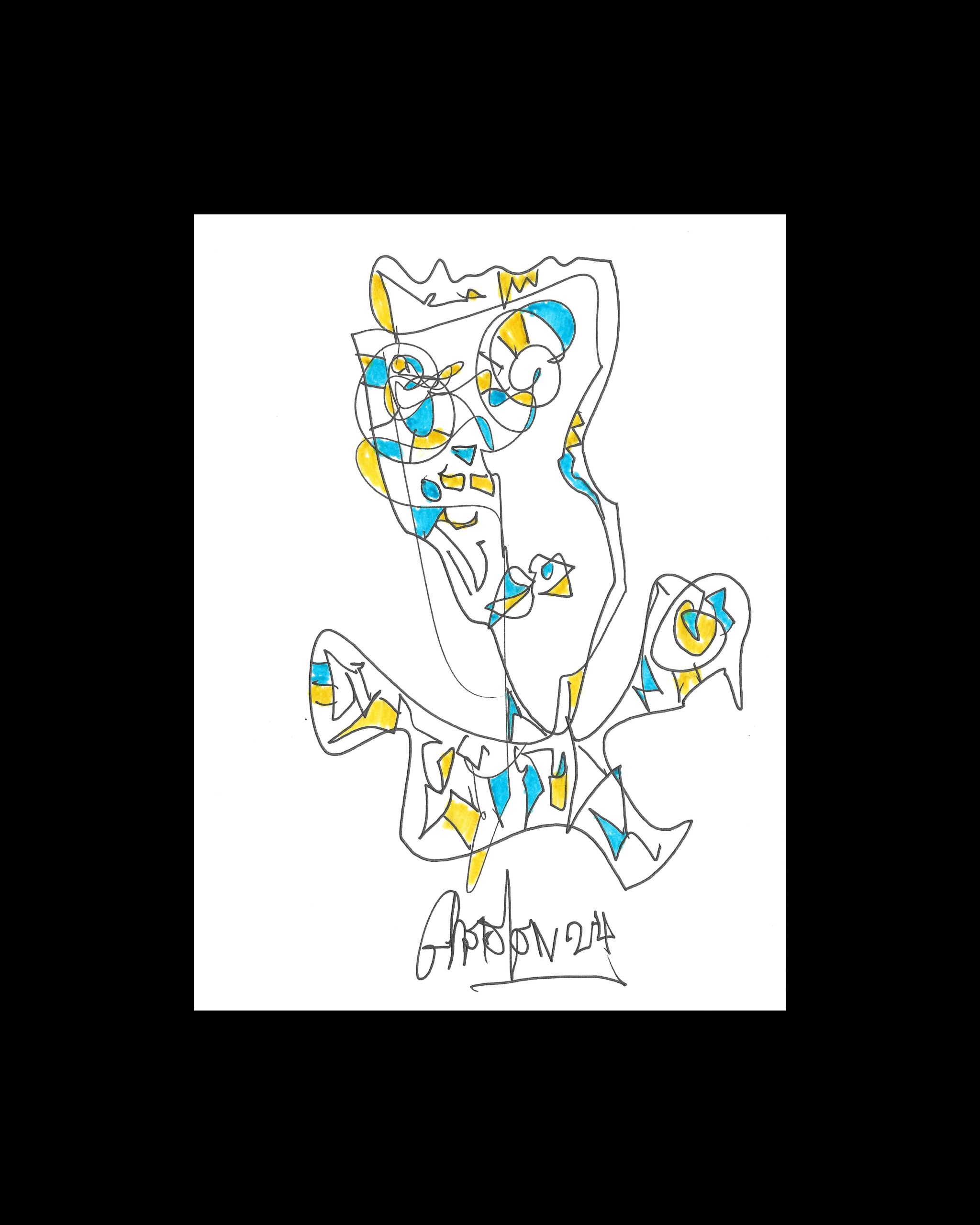 Im ersten Quartal 2024 schuf Jarallah Ghaidan über 650 Bilder! Etwa 160 davon werden hier im Shop angeboten. Die Bilder haben entweder eine Größe DIN A4 oder A5. Dieses Bild in der Größe DIN A5 wurde auf weißem Papier gemalt. Das Kunstwerk entstand unter Verwendung unterschiedlicher Techniken. Die Konturen werden in der Regel mit einem Tintenstift gezeichnet. Die Kolorierung erfolgt mit Filzstiften oder Wasserfarbe oder auch Acryl.