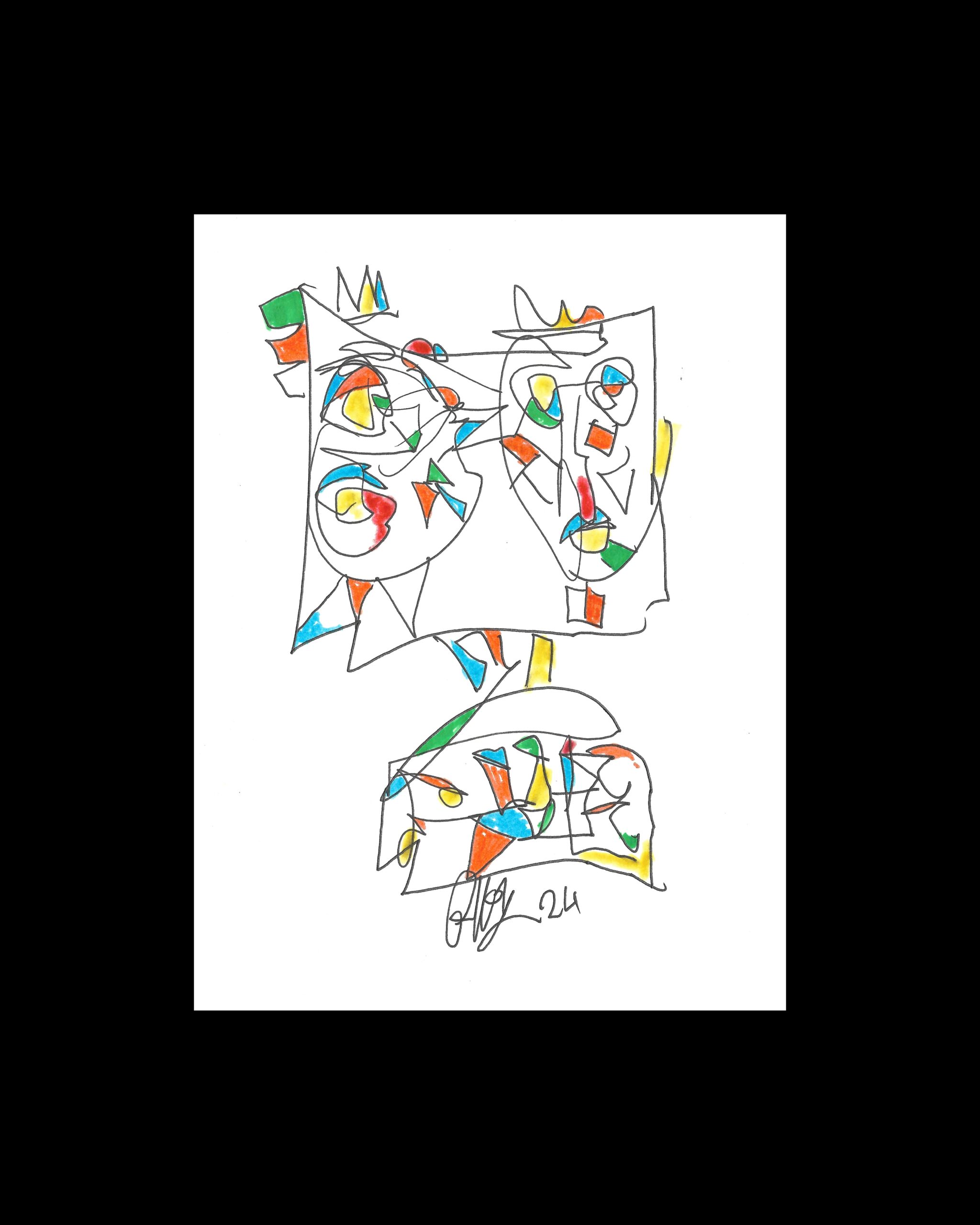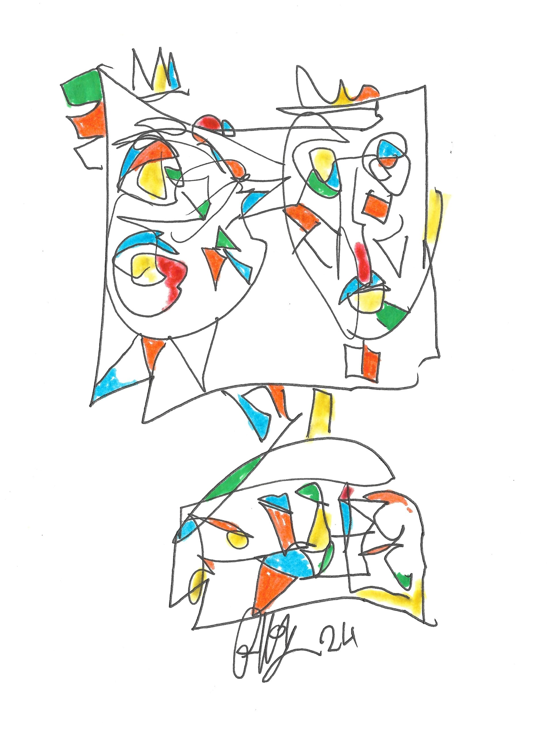Im ersten Quartal 2024 schuf Jarallah Ghaidan über 650 Bilder! Etwa 160 davon werden hier im Shop angeboten. Die Bilder haben entweder eine Größe DIN A4 oder A5. Dieses Bild in der Größe DIN A5 wurde auf weißem Papier gemalt. Das Kunstwerk entstand unter Verwendung unterschiedlicher Techniken. Die Konturen werden in der Regel mit einem Tintenstift gezeichnet. Die Kolorierung erfolgt mit Filzstiften oder Wasserfarbe oder auch Acryl.