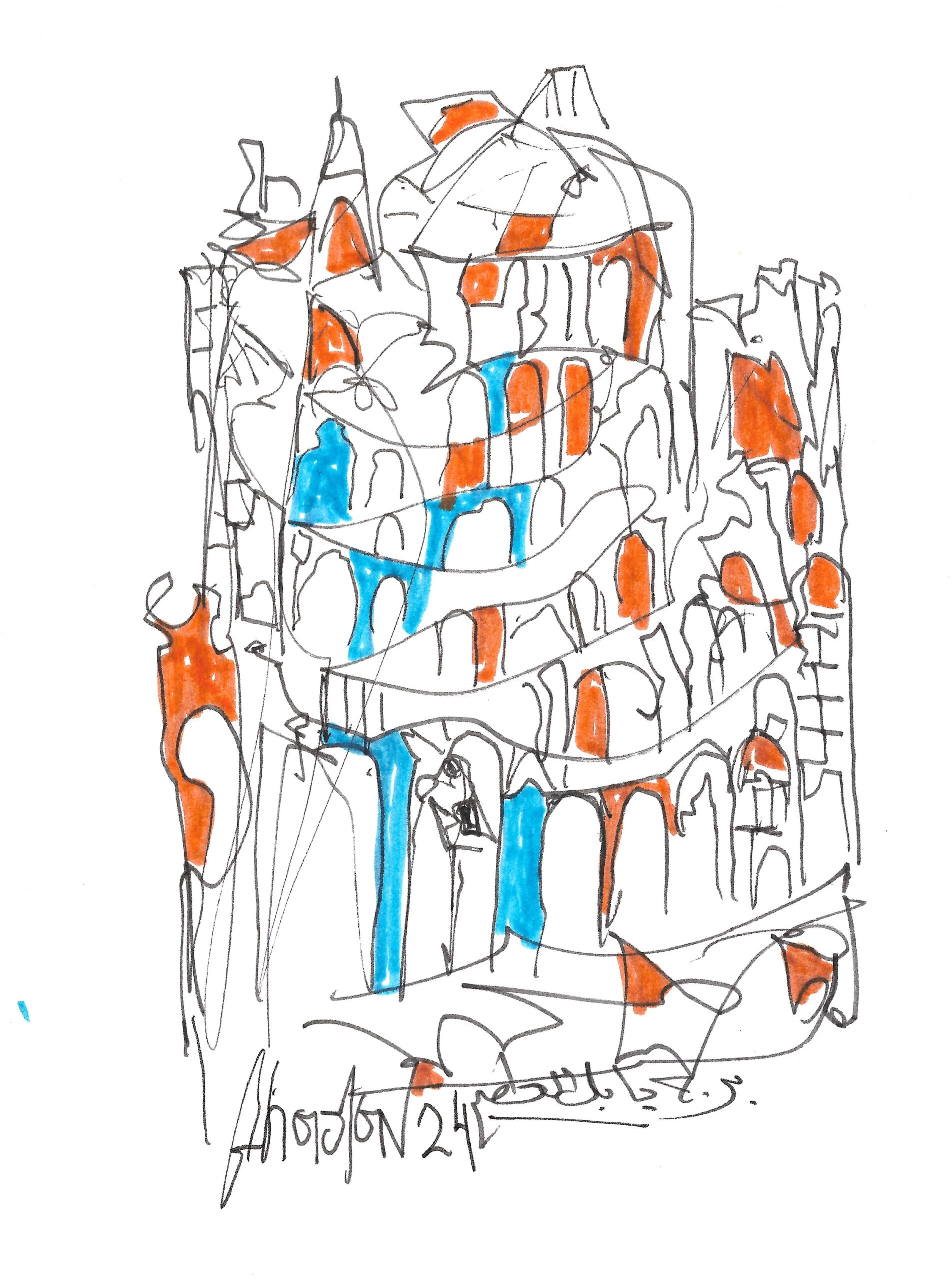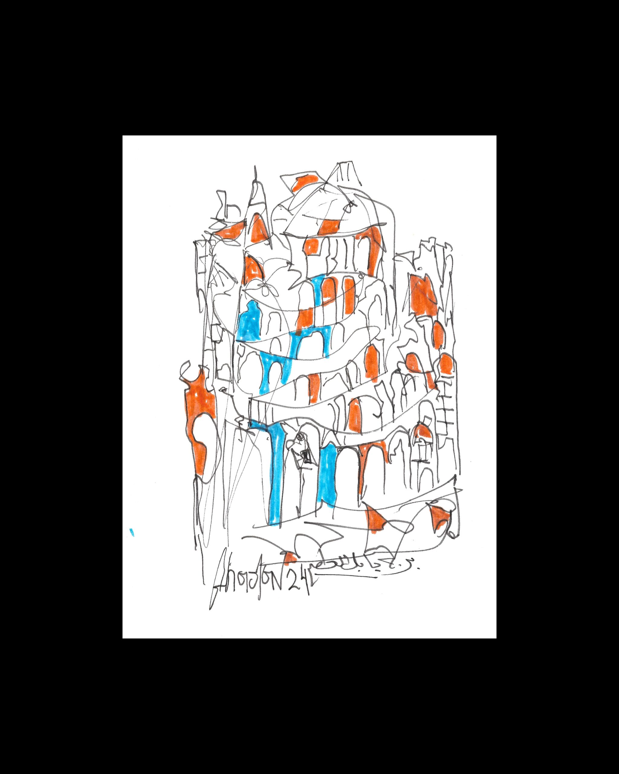 Im ersten Quartal 2024 schuf Jarallah Ghaidan über 650 Bilder! Etwa 160 davon werden hier im Shop angeboten. Die Bilder haben entweder eine Größe DIN A4 oder A5. Dieses Bild in der Größe DIN A5 wurde auf weißem Papier gemalt. Das Kunstwerk entstand unter Verwendung unterschiedlicher Techniken. Die Konturen werden in der Regel mit einem Tintenstift gezeichnet. Die Kolorierung erfolgt mit Filzstiften oder Wasserfarbe oder auch Acryl.