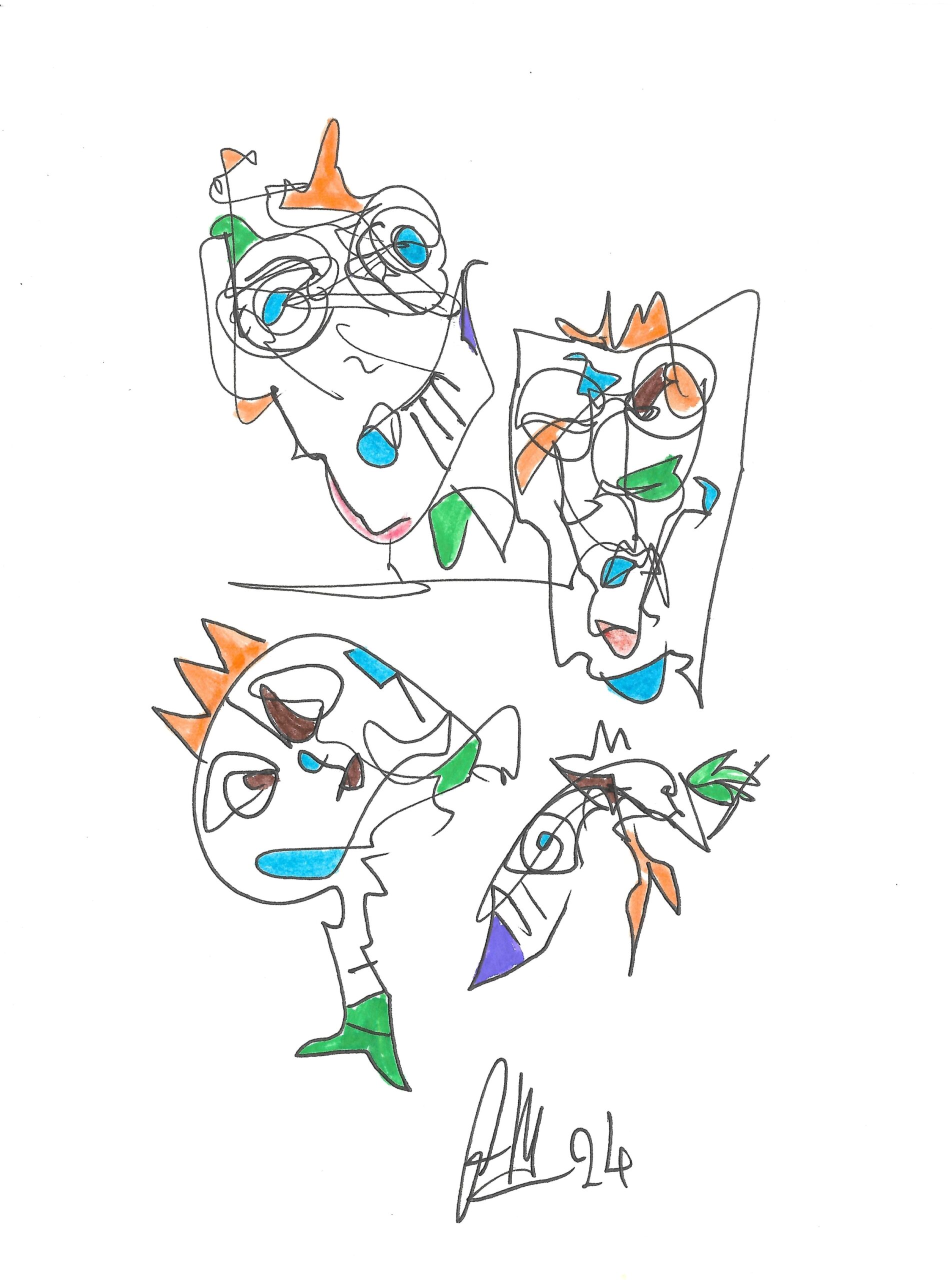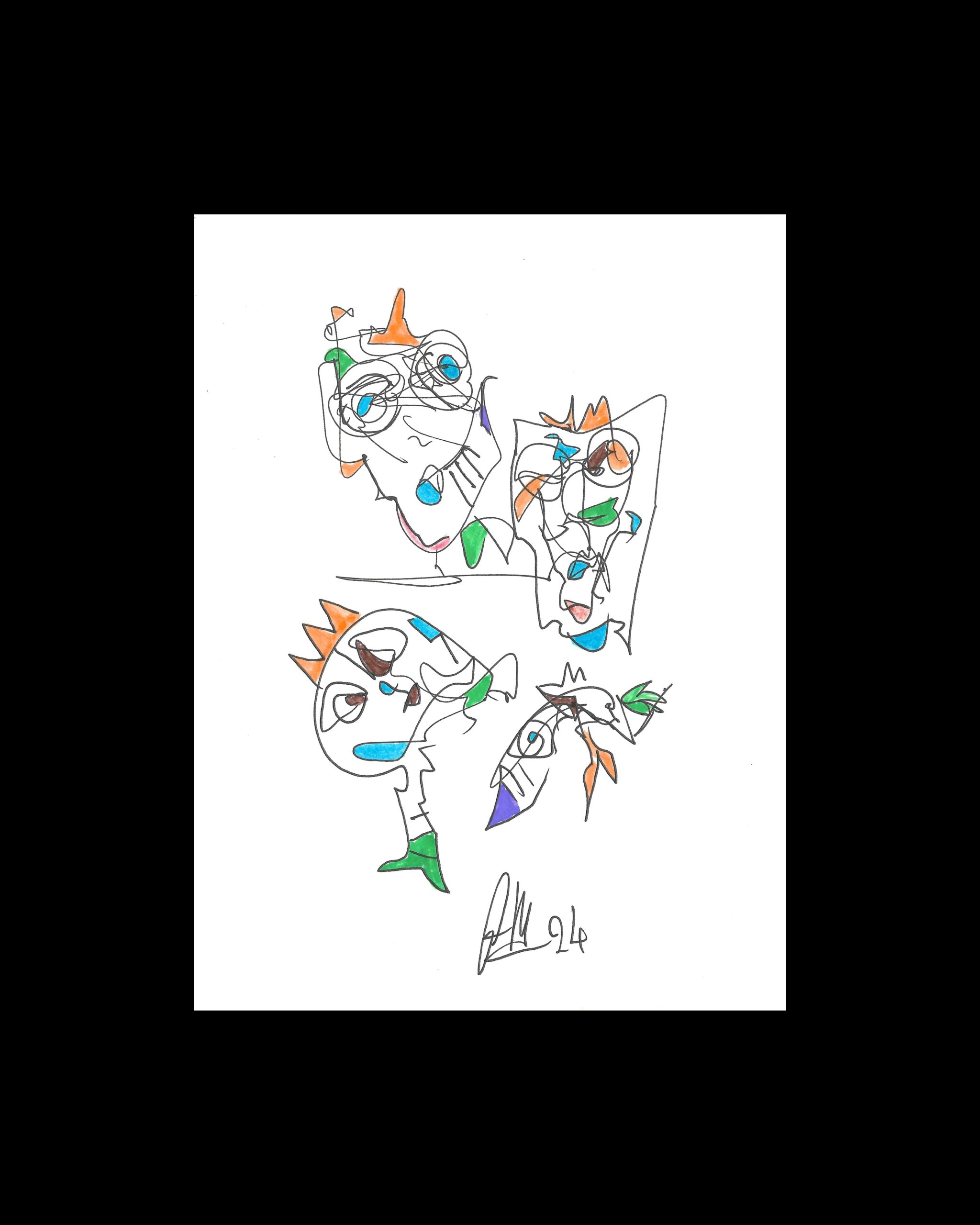 Im ersten Quartal 2024 schuf Jarallah Ghaidan über 650 Bilder! Etwa 160 davon werden hier im Shop angeboten. Die Bilder haben entweder eine Größe DIN A4 oder A5. Dieses Bild in der Größe DIN A5 wurde auf weißem Papier gemalt. Das Kunstwerk entstand unter Verwendung unterschiedlicher Techniken. Die Konturen werden in der Regel mit einem Tintenstift gezeichnet. Die Kolorierung erfolgt mit Filzstiften oder Wasserfarbe oder auch Acryl.